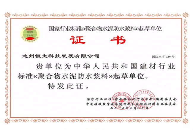 行業(yè)標(biāo)準(zhǔn)起草證書(shū)